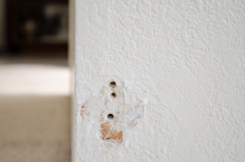 and this one at the bottom of the rail by the front door. This one is my favorite because you can still see the fleur de lis imprint in the wall. :)
