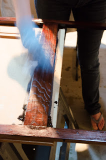 Stopped action shot of clearing off the unused stain. (Nice flash shadow, huh?)
